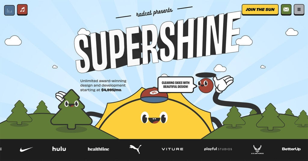 In the example above from Supershine, the tilted text is combined with some animated hover effects for an extra level of interactivity.