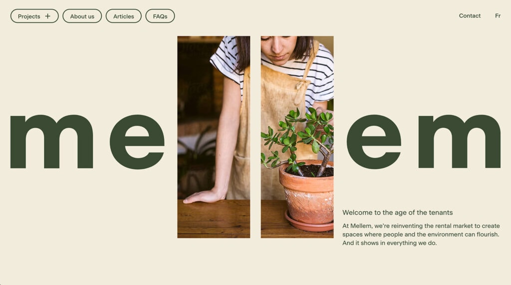 In the example from Mellem, the earthly feel is a combination of color – dark and light greens – with images that reinforce more “green” items, such as plants. What you might not expect is that this design is for real estate rentals.