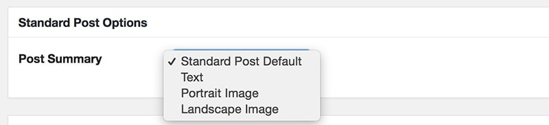 • Scroll down to Standard Post Options and choose how you would like your post to display on post archive pages.