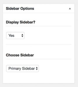 • Choose whether or not you would like to display a sidebar on your post (otherwise, will pull from default settings set in Theme Options > Blog Settings).