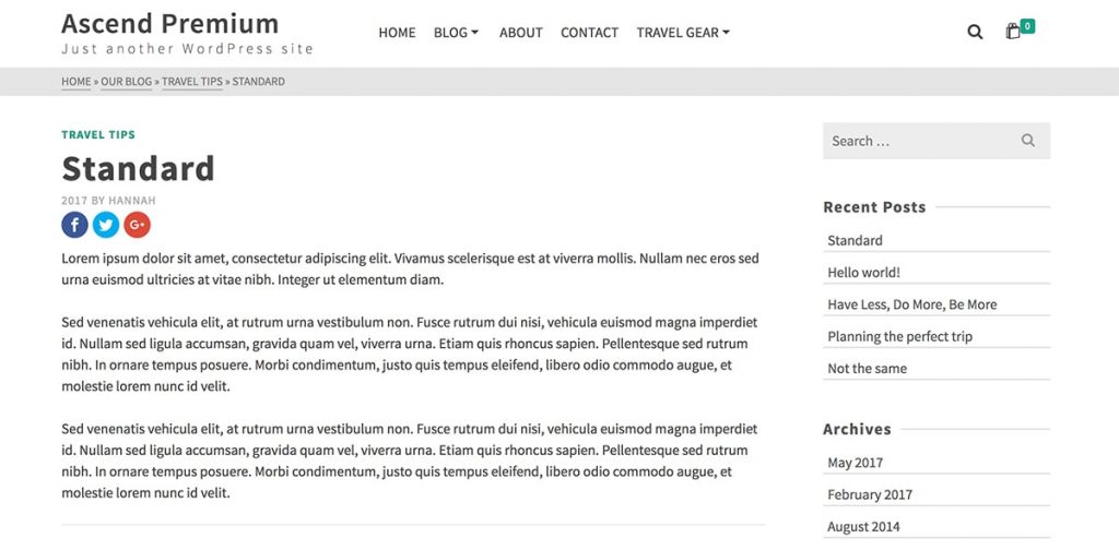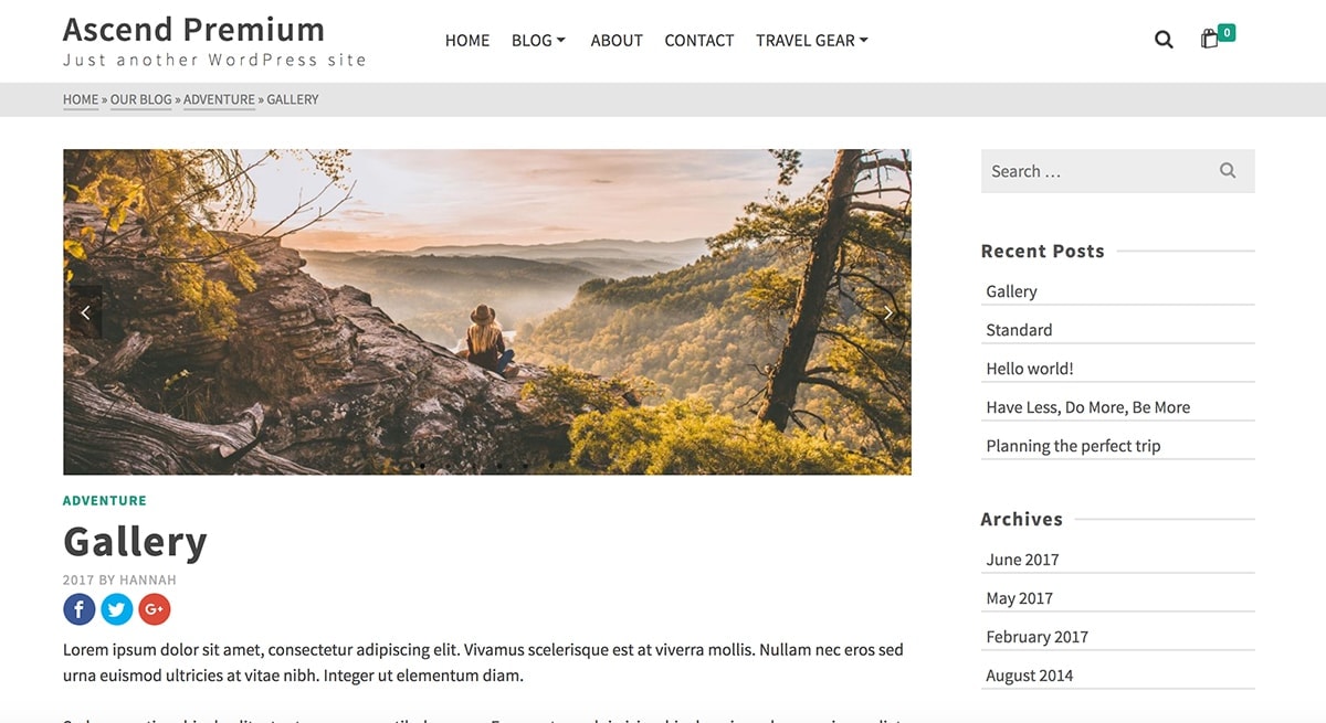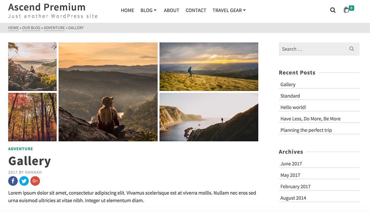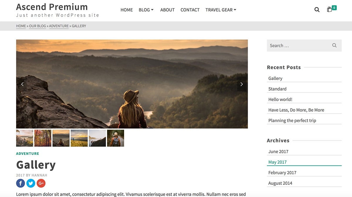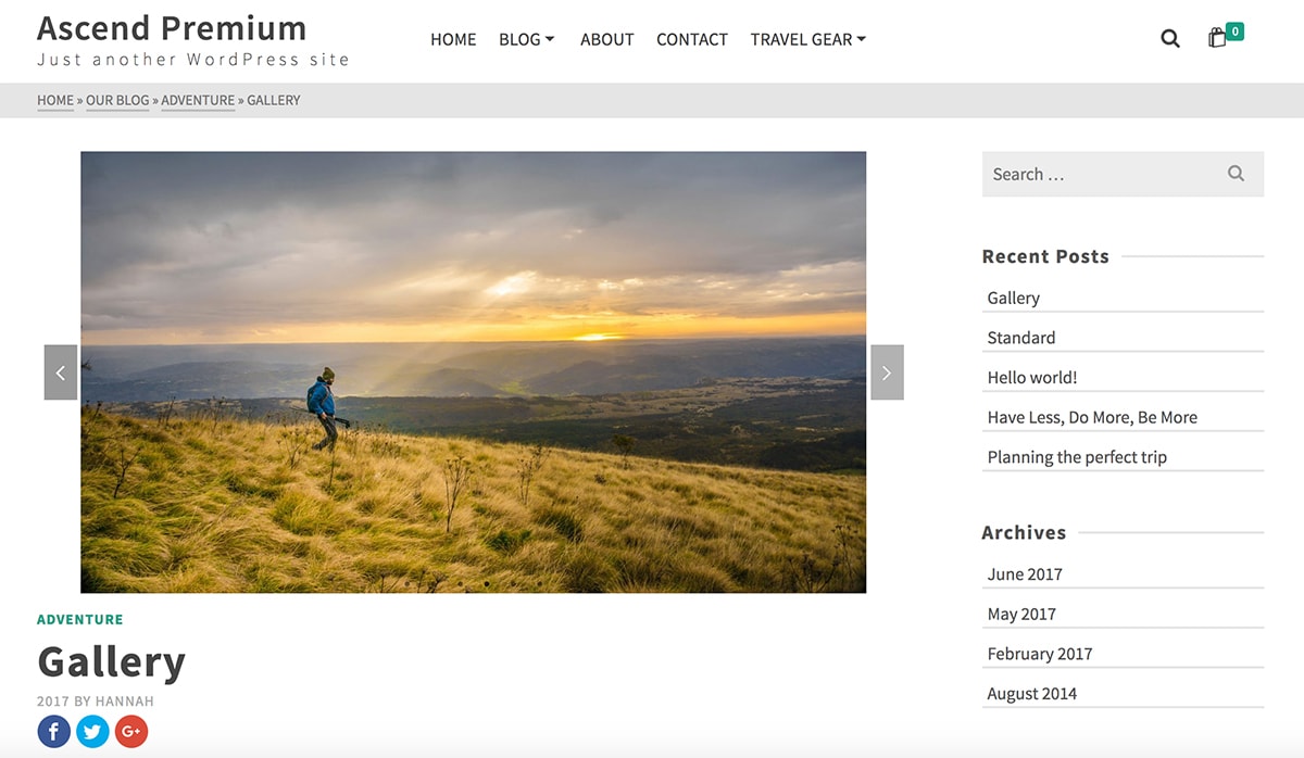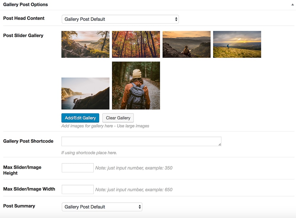 *Note Gallery Post Default settings can be set in Theme Options > Blog Settings.