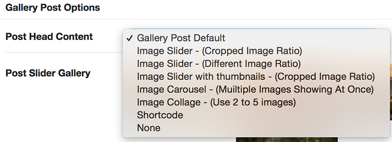 •  Scroll down to Gallery Post Options and choose what you would like to display as your post head content.