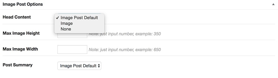 *Note Image Post default settings can be set in Theme Options > Blog Settings.