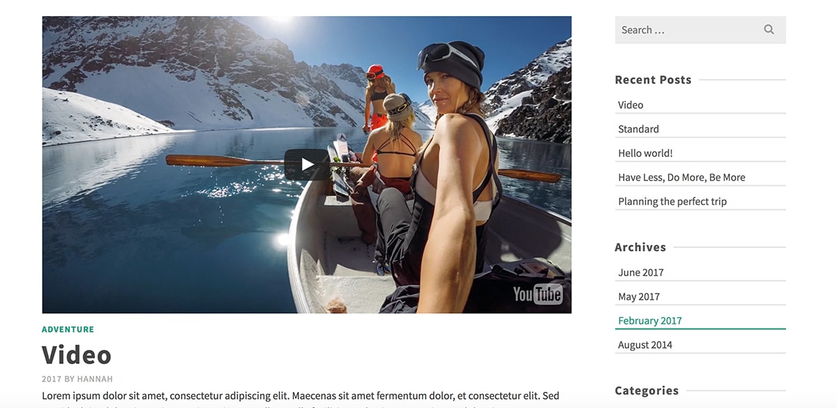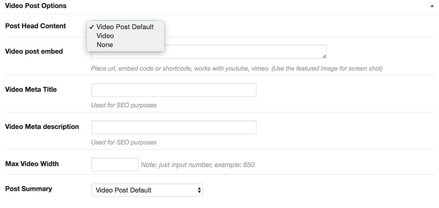 *Note Video Post default settings can be set in Theme Options > Blog Settings.