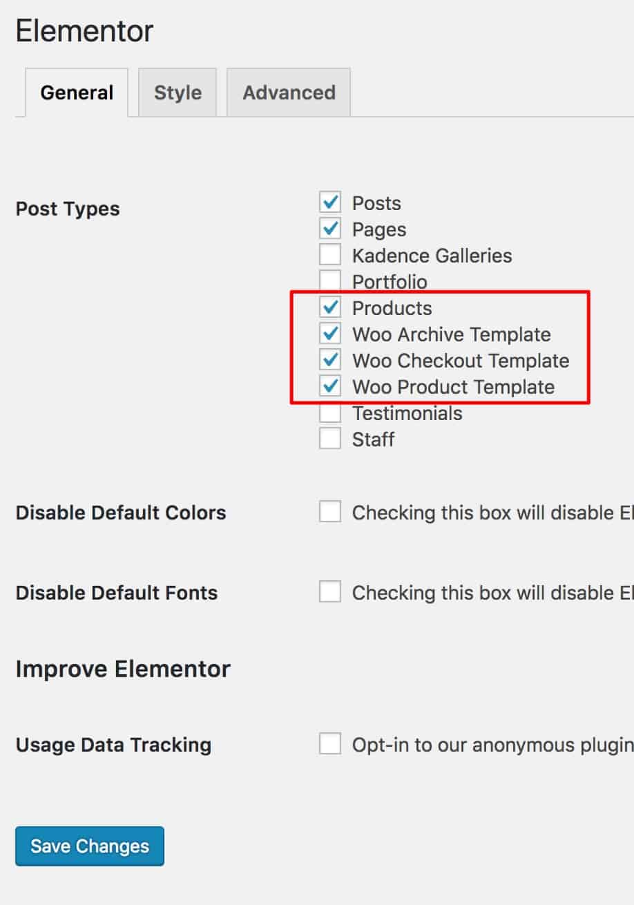 1. Just as with an archive, be sure that you’ve enabled the checkout in Elementor >> Settings.