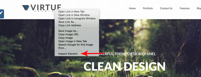 - First right click on your logo and click “Inspect Element.” Ensure the Elements tab is open.