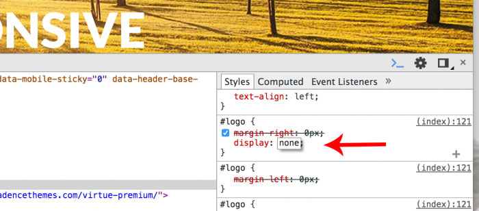 Let’s say you want to hide your logo from your site, but you’re unsure of the css selector. You can find out the correct selector/class/div from the DevTools and test it out before actually adding the css to your site.