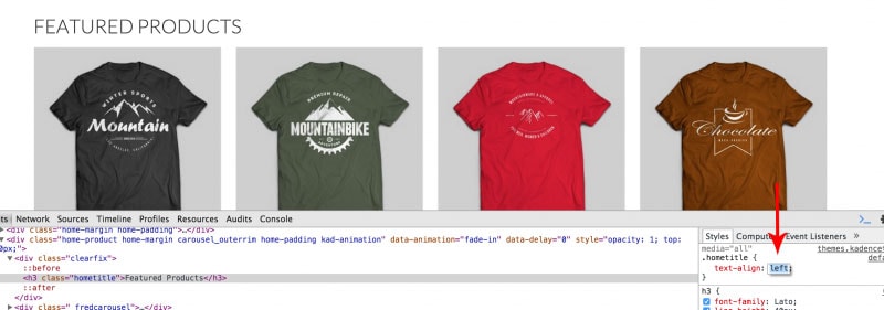 - Find the text selector and type “text-align: left;” or whichever way you want it aligned.