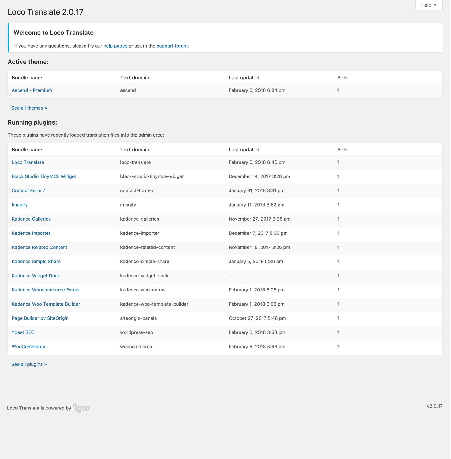 When in the LocoTranslate Home Screen, select the text domain of the text that you’re trying to change comes from. In this case, it will be Ascend – Premium. If you want to translate strings within plugins, such as WooCommerce, select that file instead.