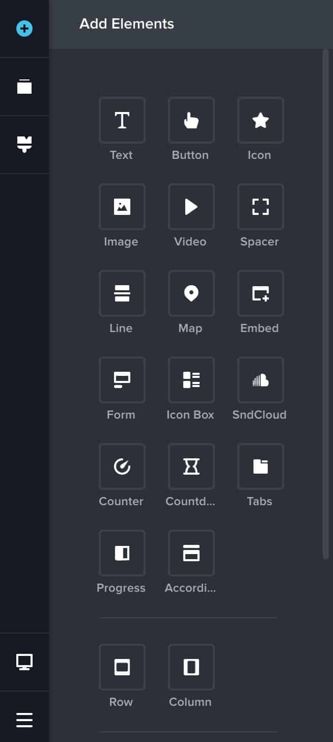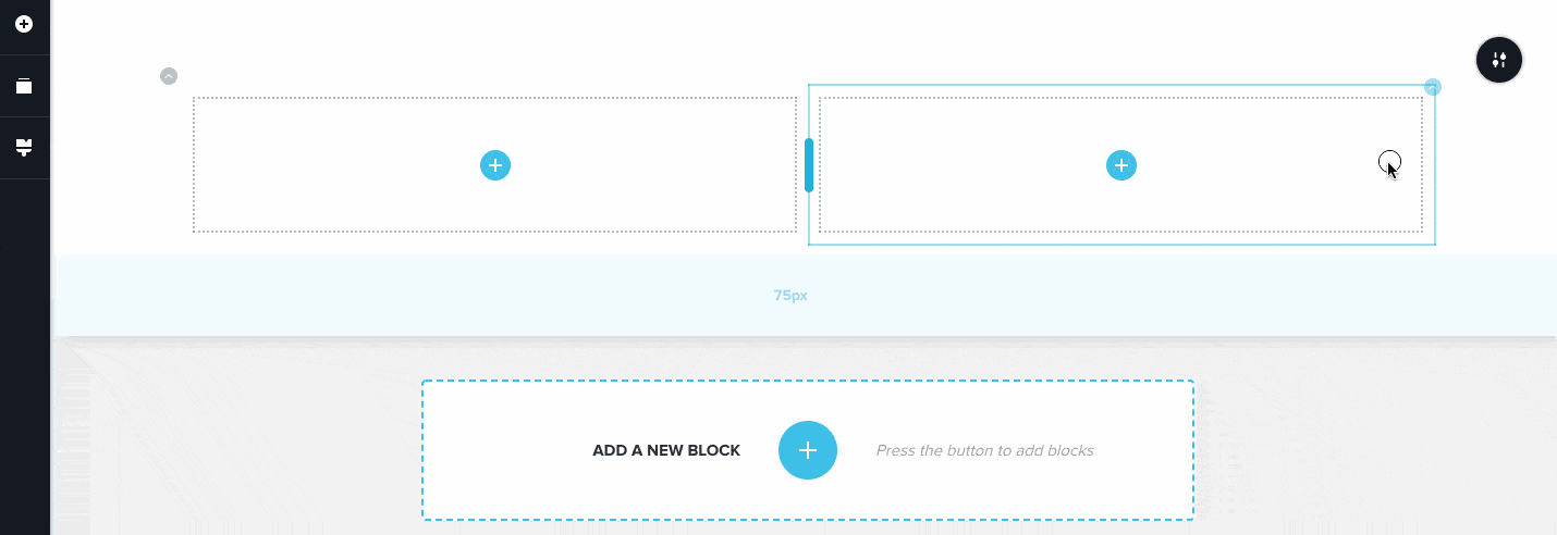 1. To add elements to your page, click a “plus” button, and drag the element to where you want it to show: