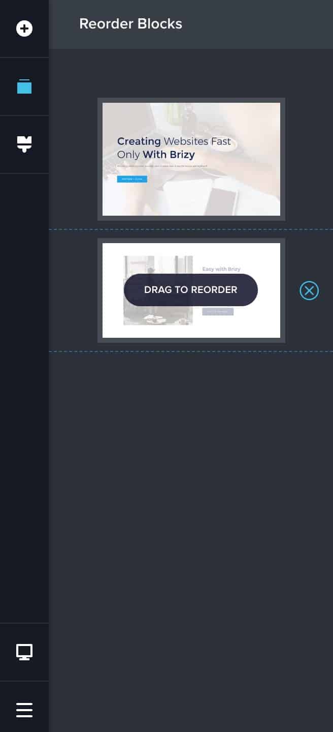 - In the second, you can quickly reorder your Brizy blocks.