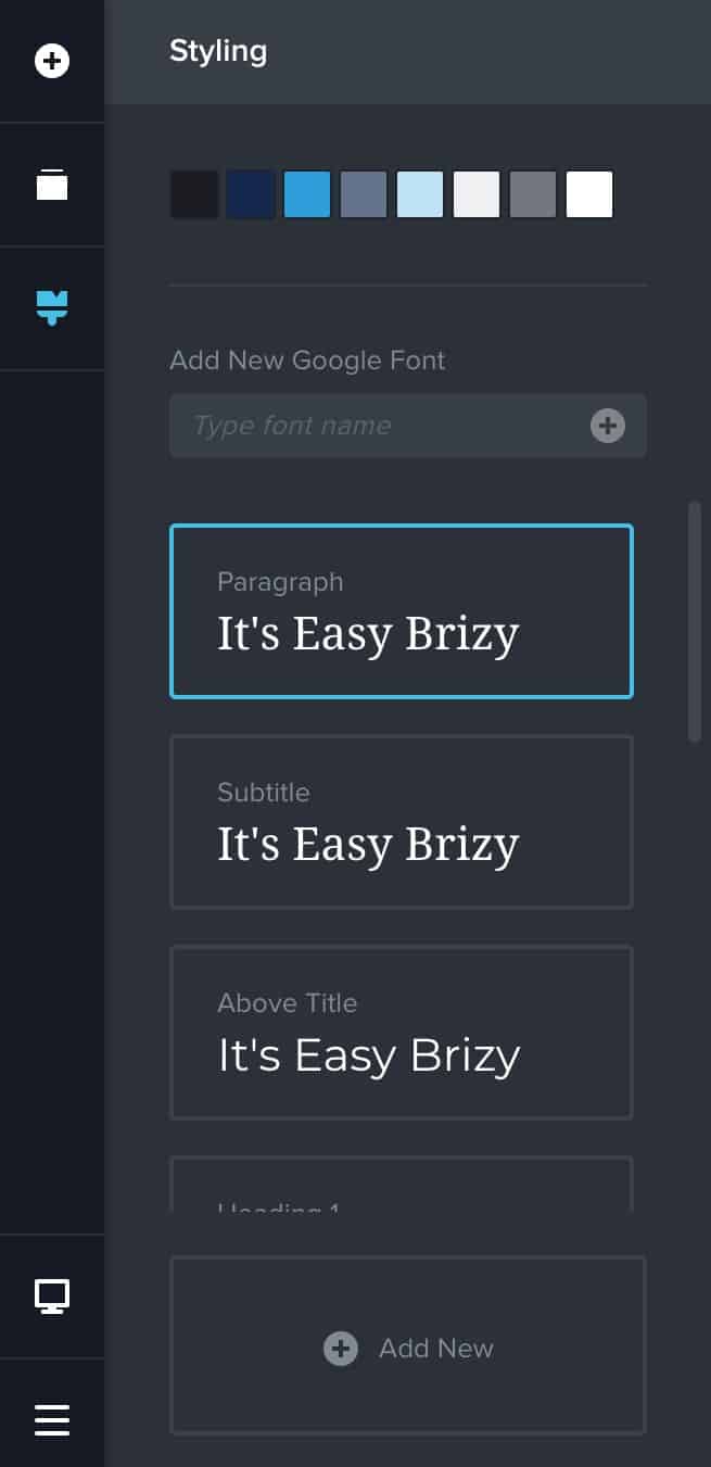 - The last is your styling options. There, you can set the default styling for the page.