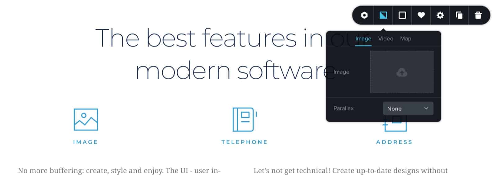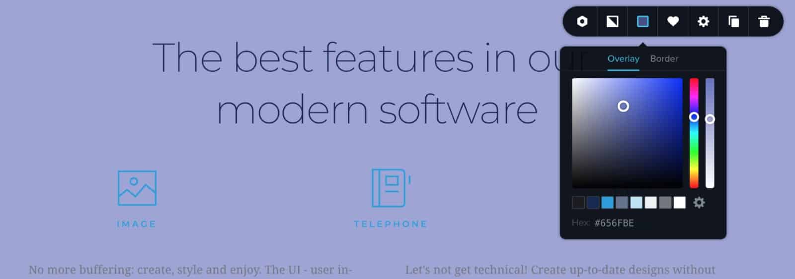 2. To access the settings for each element, click on it, and change the settings within the popup. To edit the text, just click it and type into the element: