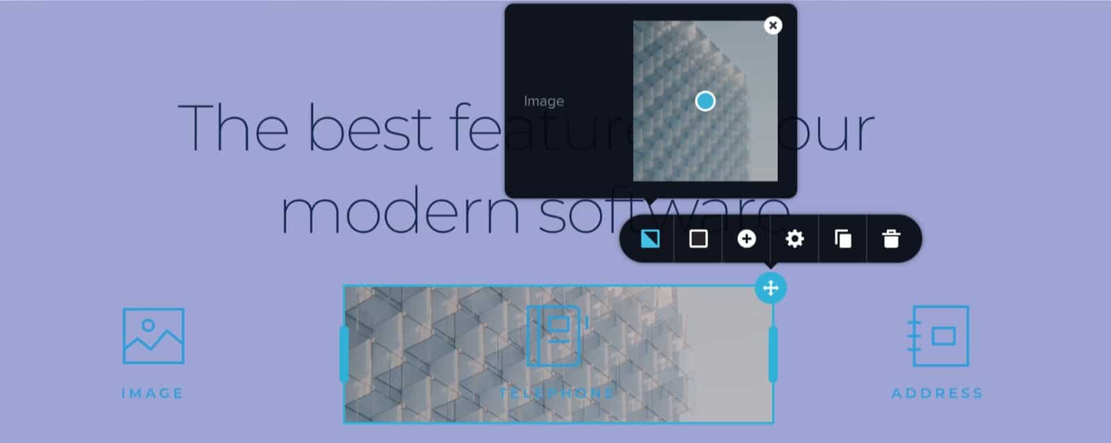 Click the image options and replace the image with your desired photo: