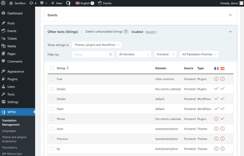 Finally, go to WPML → Translations to review your translations.