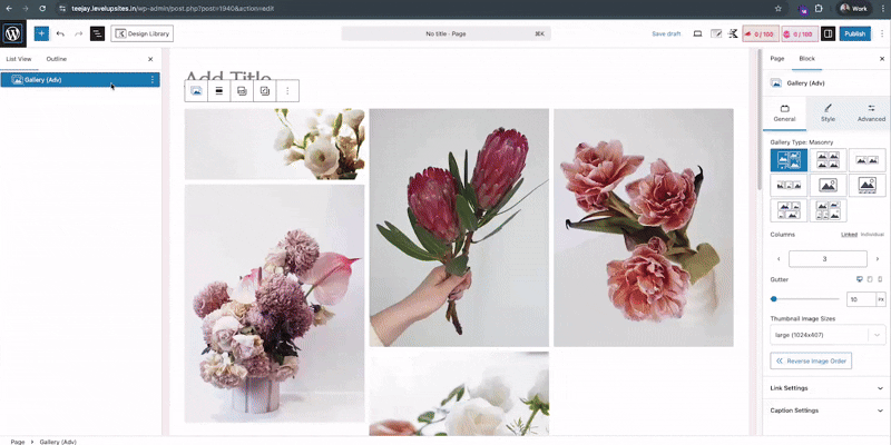 Use the Advanced Settings to control more advanced features of the Advanced Gallery Block.