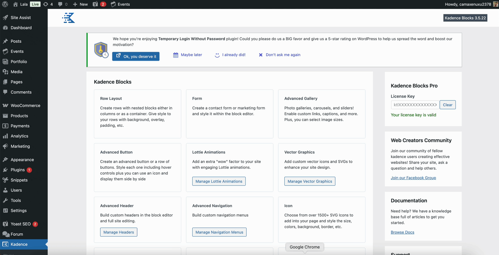 To get started, ensure you have the Kadence Blocks Plugin installed and activated on the website. From the Block Editor, add a new Lottie Animations Block to the page.