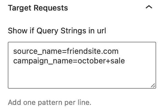 These can be tracking codes, most notably UTM codes that tell us where your site visitor is coming from and the campaign from which they are visiting. You can easily add the UTM tracking variables to Kadence Conversions in the Target Requests section of your conversion item settings.