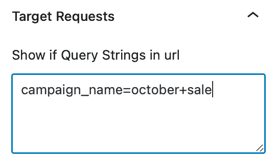 In our example, we want to show our conversion item to anyone coming in on our October sale campaign, so we will set our conversion target request setting as shown below.