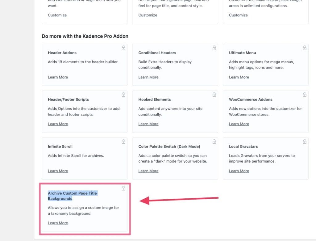 The Archive Custom Page Title Backgrounds feature is available with the Kadence Theme Kit Pro plugin.