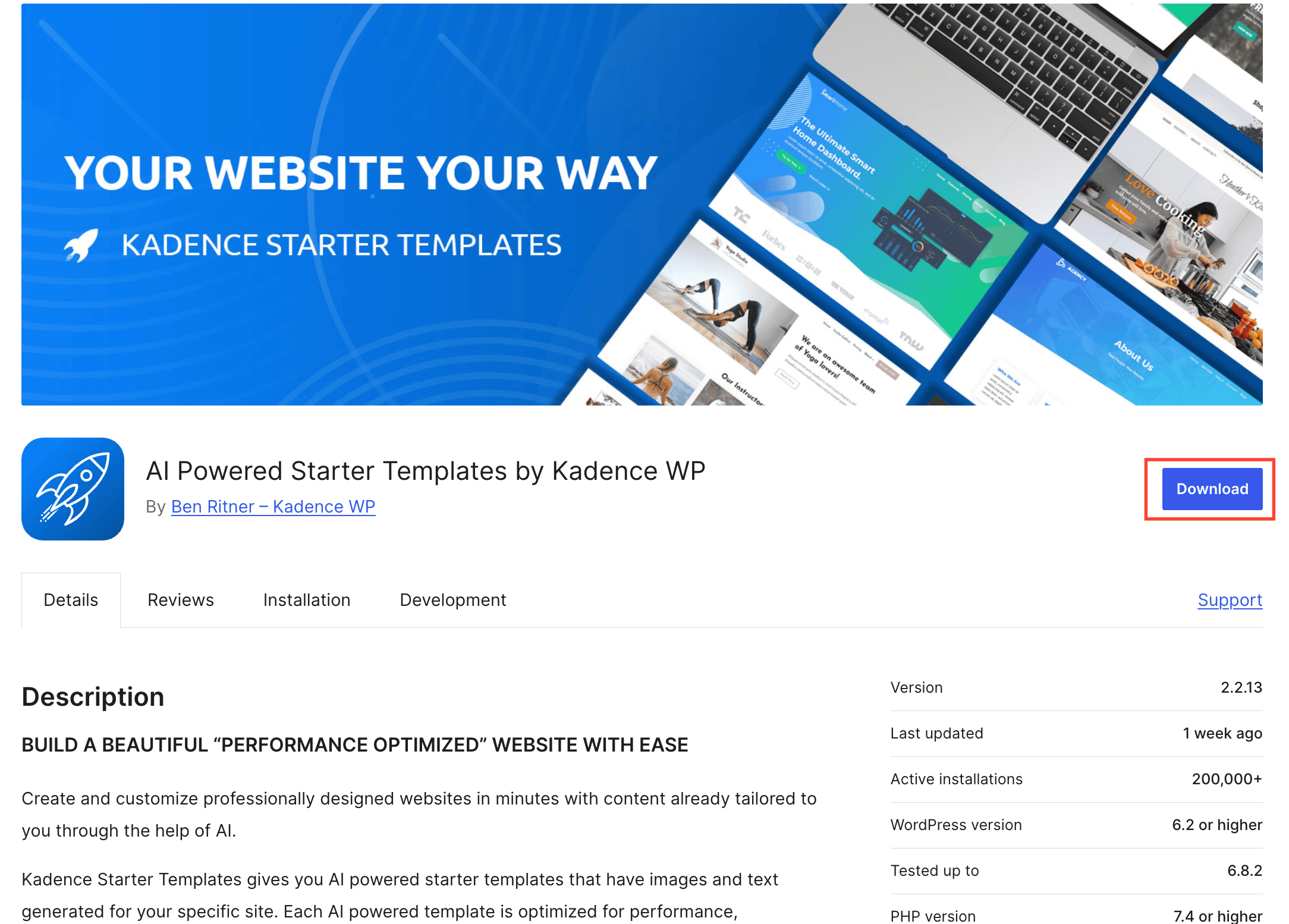 First, download the AI Powered Starter Templates by Kadence WP by clicking here. Be sure to keep the file in its .zip format. Do not extract it, as WordPress requires the ZIP for upload.